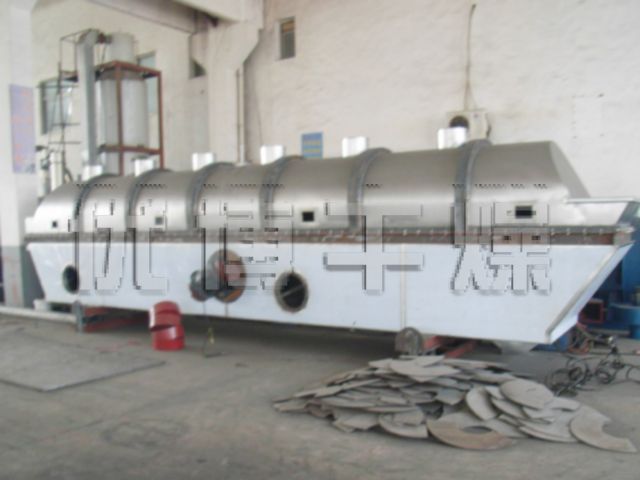 香料干燥機是由物料自進料進口進入機內,在振動力作用下,物料沿水平面流化床拋擲,向前連續運動,熱風向上穿過流化床同濕物料換熱后,濕空氣經旋風分離器除塵后由排風1:3排出.干...